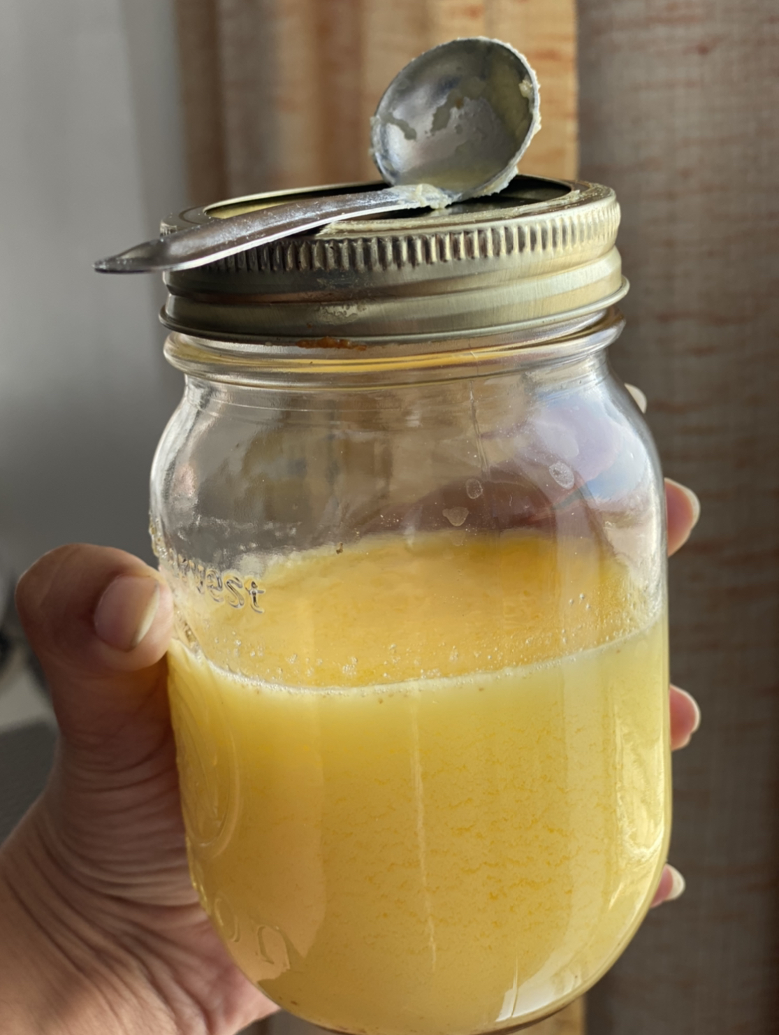 I make my ghee most times or at least my mom does. Here is our recent picture of ghee we made at home.