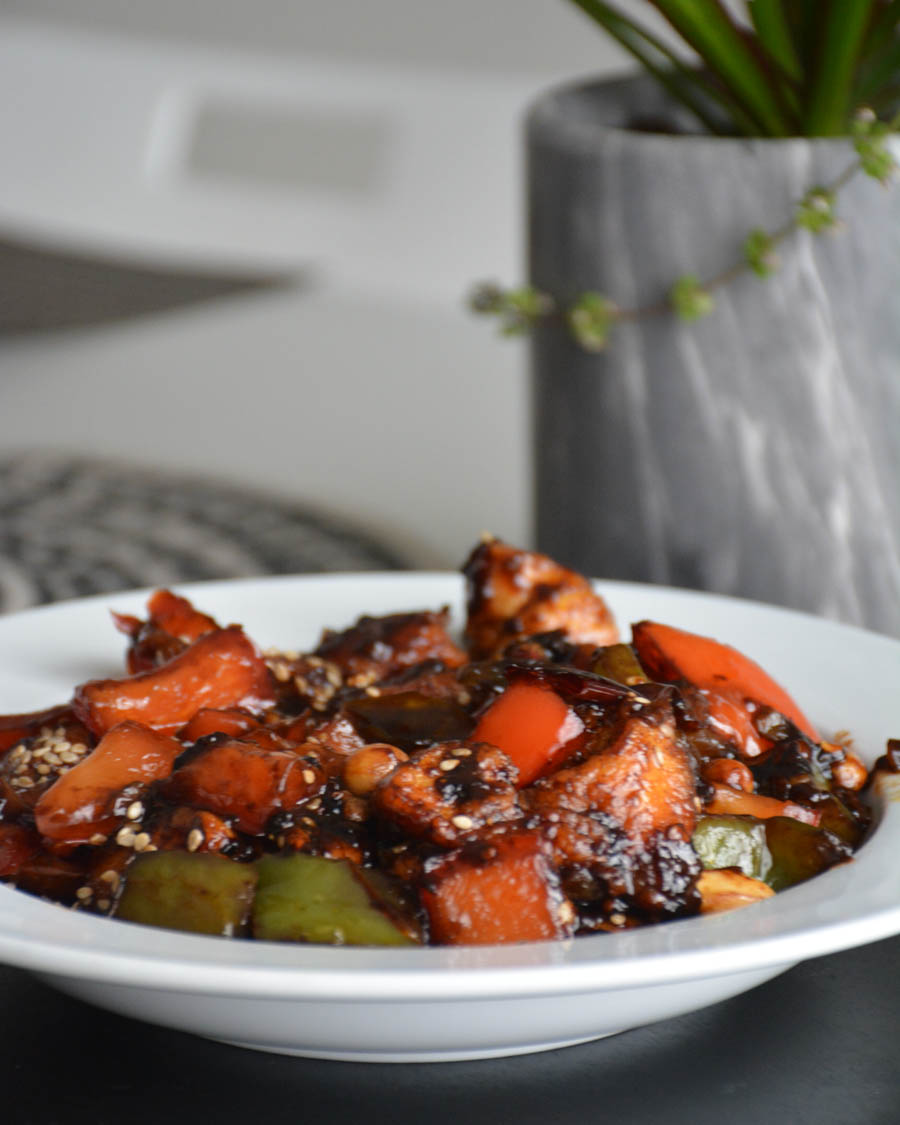 I make a lot of spicy dishes if you know me and I love having gallons of water after it. This is one of those dishes, but with a sweet touch. In my opinion, you can’t make this recipe without dried red chili, so definitely try getting your hands on them. They are usually found in the Latino or Asian grocery section. If you want to make it on the mild-spicy side then only add half of the dried red chilli. You can easily add your favourite vegetables like zucchini, green bell peppers, onions, broccoli, and baby corn along with the red bell peppers.