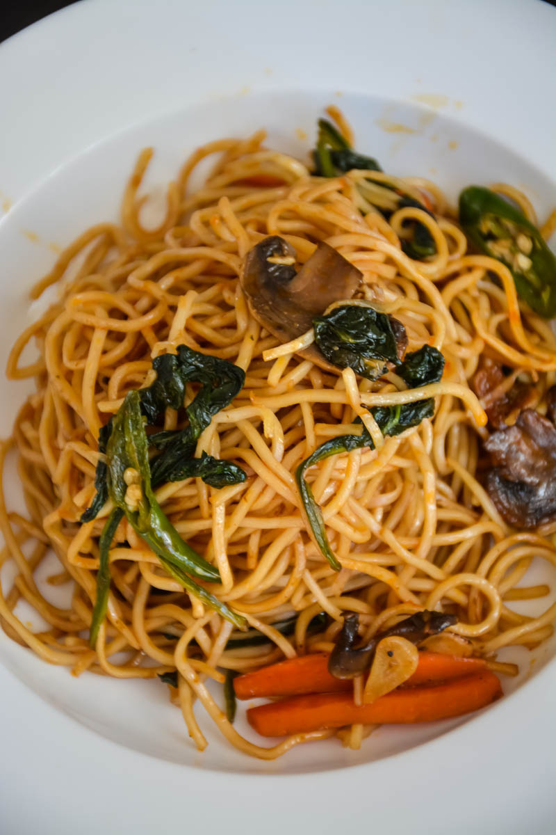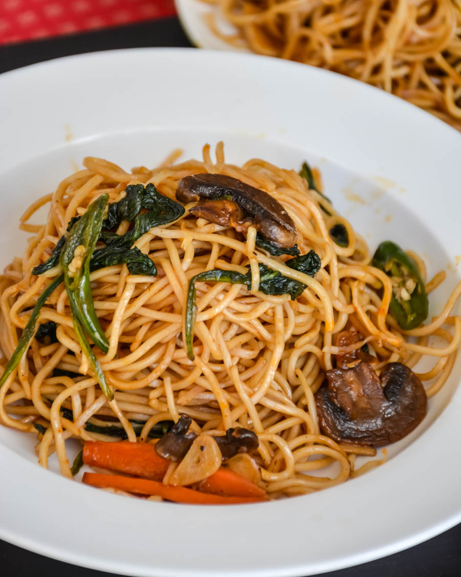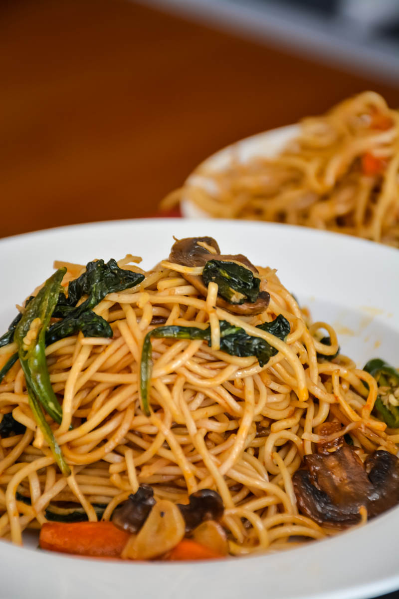 Mushroom Chow mein-5Crispy noodles with mushrooms and spinach!